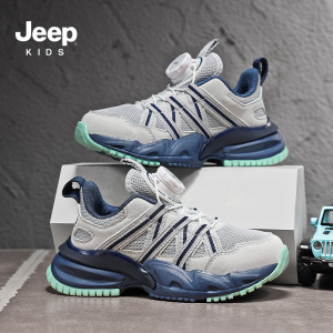 Jeep男童鞋2025春秋新款儿童运动鞋旋转纽扣跑步鞋透气网面休闲鞋