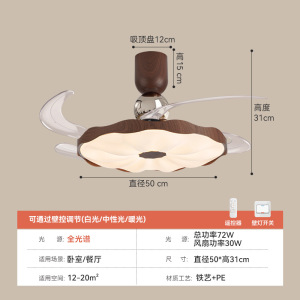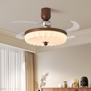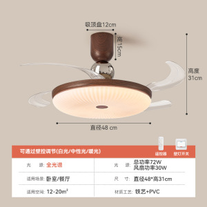 迪格雅中古风卧室隐形风扇灯复古奶油风餐厅书房智能静音护眼灯具