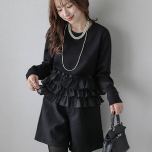 日系乐天ins秋冬新上拼接网纱长袖上衣宽松卫衣娃娃衫女跨境外贸