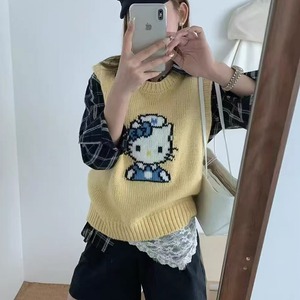 韩系穿搭卡通针织马甲女2025早秋冬新款毛衣坎肩背心上衣女潮