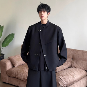 新中式结构活页外套男款春秋黑色立领西装痞帅高级感短款休闲西服