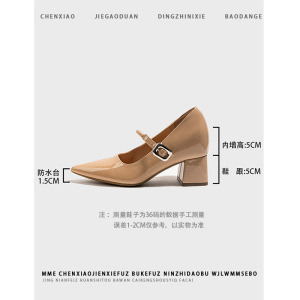 不累脚!内增高10CM粗跟尖头2025裸色高跟鞋浅口玛丽珍鞋单鞋女