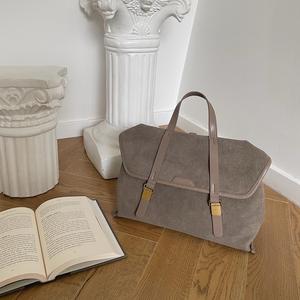 2025新款复古磨砂牛皮邮差包小众高级感麂皮双肩包大容量真皮女包