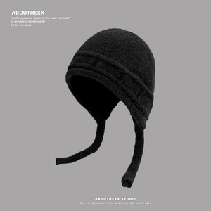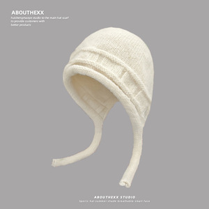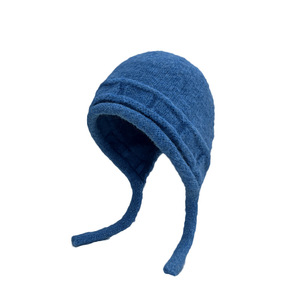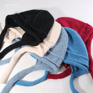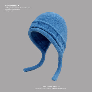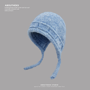 蓝色绑带针织包头帽女秋冬出游毛绒毛线帽显脸小户外保暖韩系帽子