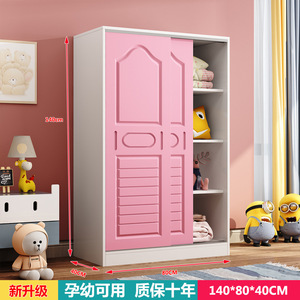 儿童衣柜实木家用卧室小户型推拉门整体小衣橱收纳柜子简易隐藏式
