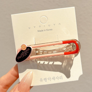 韩系拼色笑脸发夹女2025新款高级感侧边刘海夹不伤发碎发发卡头饰