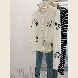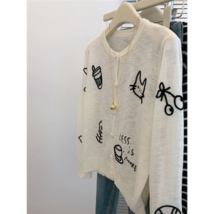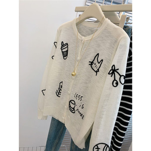 胖mm特大码300斤卡通刺绣防晒针织开衫女士薄款外套早秋新款上衣