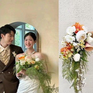 旅拍园林风婚纱摄影道具美学拍照婚礼瀑布水滴仿真新娘手捧花