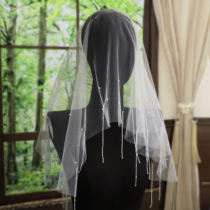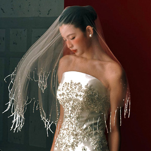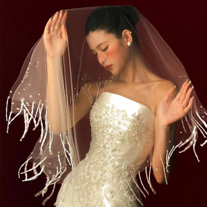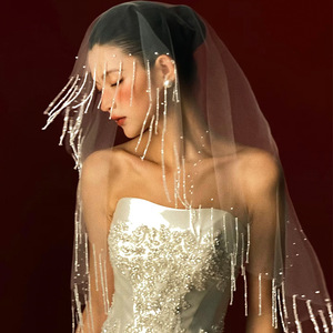 新款水晶串珠流苏头纱正方形结婚拍照妆造头饰飘逸高级感新娘头饰