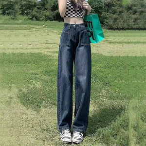 跨境复古阔腿牛仔裤女春秋薄款显瘦宽松直筒垂感拖地梨形裤子代发
