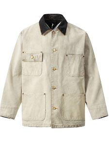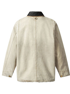 11KN美式复古密歇根夹克男女设计感纯棉水洗做旧帆布皮制翻领上衣