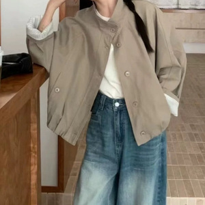 感韩系立领撞色工装外套女秋季新款风衣港风休闲流行现货爆款