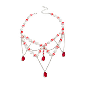 欧美跨境哥特风染血仿珍珠串珠项链 万圣节滴血水晶吊坠锁骨项饰