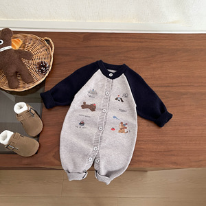 超萌小月龄外出服秋装婴儿衣服洋气撞色针织包屁哈衣新生可爱毛衣