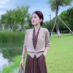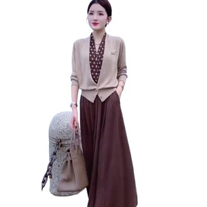 名媛风轻奢假两件针织衫秋冬新款贵妇气质半身裙套装