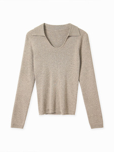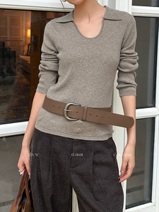 ELSISSI复古修身U领撞色长袖针织衫女2025秋季新款十三行慵懒上衣