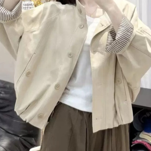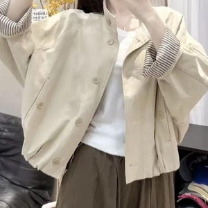 韩系立领工装外套女2025秋季港风休闲流行夹克上衣米白色