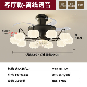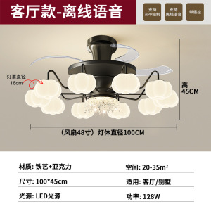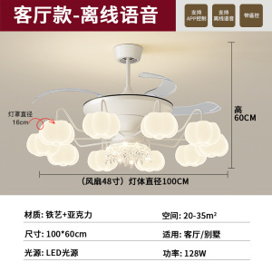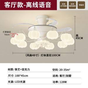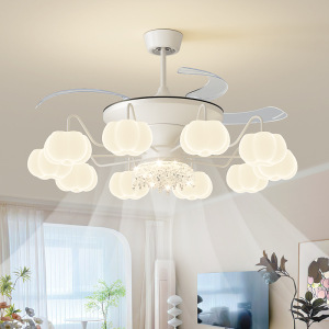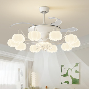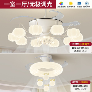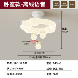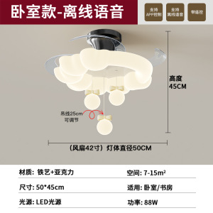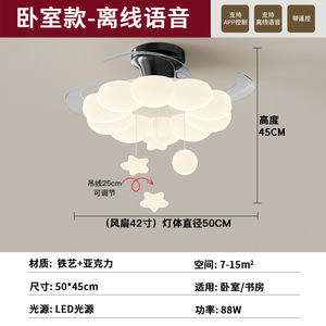 新款奶油风风扇灯静音隐形餐厅风扇灯创意云朵儿童房吸顶风扇灯