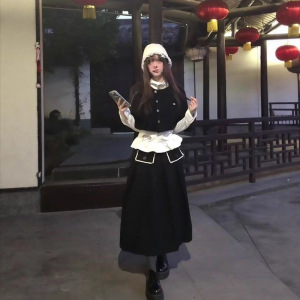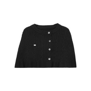 麻花斗篷披肩+高领木耳边上衣 两件套