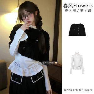 纯欲风穿搭两件套女秋冬麻花斗篷披肩针织衫高领刺绣t恤外搭毛衣