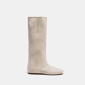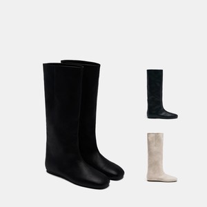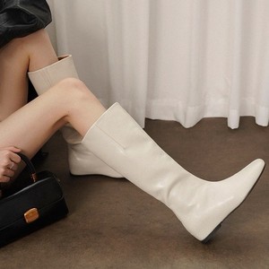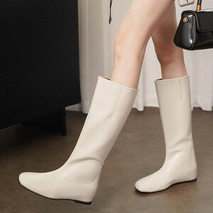 内增高套筒圆头靴子女显瘦长筒靴法式复古堆堆靴宽筒不过膝长靴女