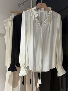 老钱风松弛感设计假两件V领长袖衬衫女秋季新款宽松显瘦百搭上衣