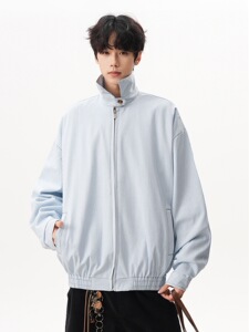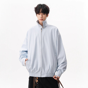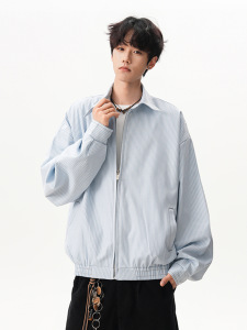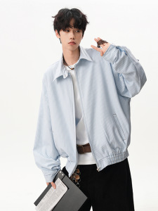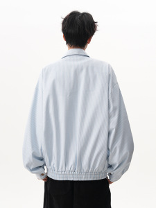美式蓝白条纹休闲夹克男秋高街百搭宽松外套潮牌百搭休闲情侣上衣