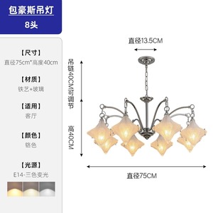 8头吊灯-铁艺+玻璃-直径75cm
