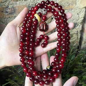 帝王血龙木佛珠文玩手串手链1.0男女本命年高透光108配阶