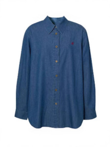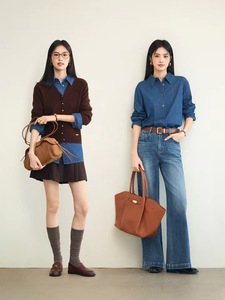 伊*L刺绣设计浅蓝色水洗牛仔全棉衬衫女2025秋季新款1G9922601