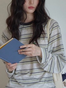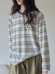 复古绿条纹长袖薄款防晒衫秋季新款韩系休闲宽松透气情侣T恤上衣