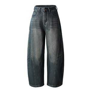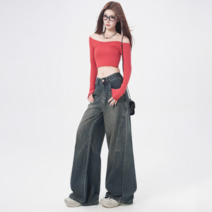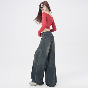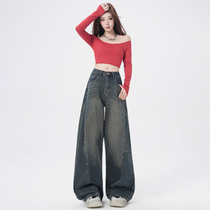 2025秋冬新款辣妹时尚复古风潮流宽松弯刀裤阔腿裤女装牛仔裤女