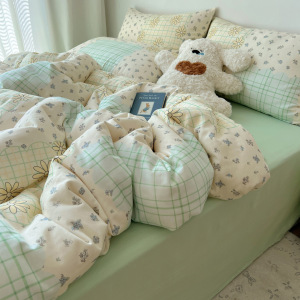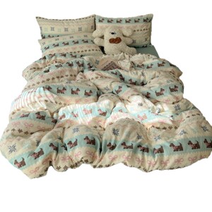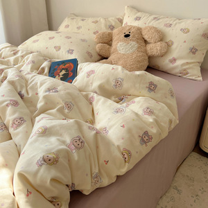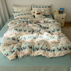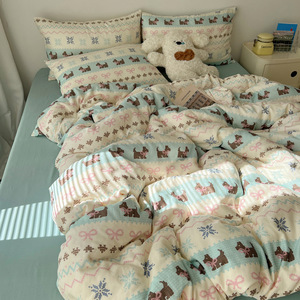 ins卡通小狗透气双层纱布全棉四件套超柔纯棉被套床单床上用品