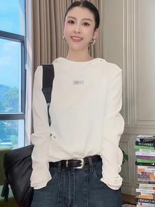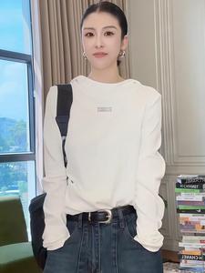 早秋白色连帽长袖t恤女内搭打底衫2025新款爆款秋季宽松帽衫上衣