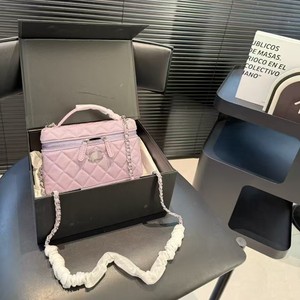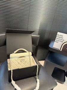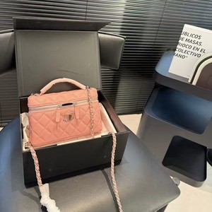新款跨境小香风化妆包大容量镜子百搭时尚真皮单肩手提斜挎女包包