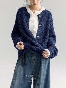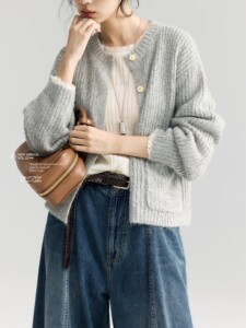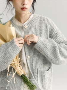 「白描」"秋叶絮语"甄选羊驼毛花纱肌理氛围感圆领针织开衫