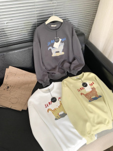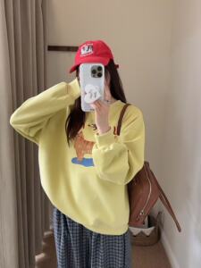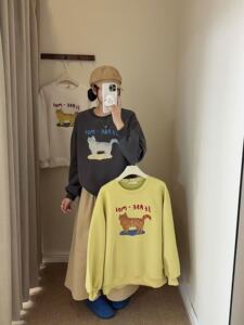 韩国东大门猫咪刺绣圆领卫衣女秋季新款氛围感慵懒宽松长袖上衣