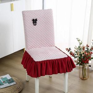 芳华简约泡泡纱椅子套罩家用弹力四季通用蕾丝裙摆餐椅套可代发