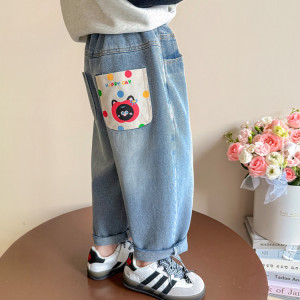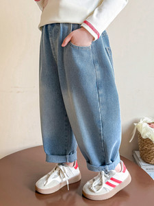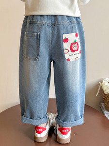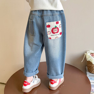 女童牛仔裤春秋季2025新款中小童卡通直筒裤儿童秋装洋气老爹裤
