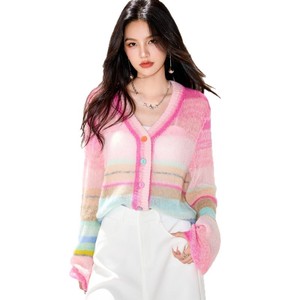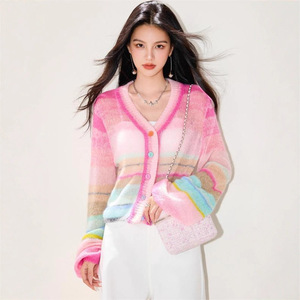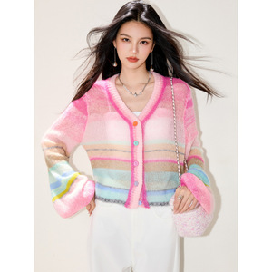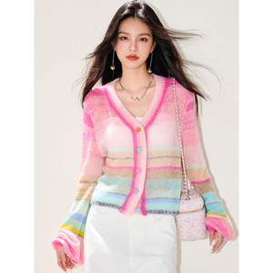 彩虹色针织毛衣2025秋冬新款法式多巴胺风针织外套显瘦A6968