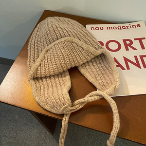 秋冬季加长护耳毛线帽女骑行骑车系带防寒保暖显脸小包头针织帽子