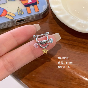 316L医用钛钢耳饰耳环精致甜酷爱心五角星吊坠耳扣耳骨链D型环