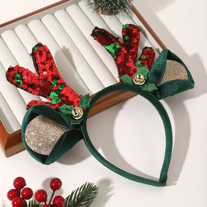 圣诞节儿童红绿搭配亮片鹿角铃铛可爱节日派对发箍发饰头饰