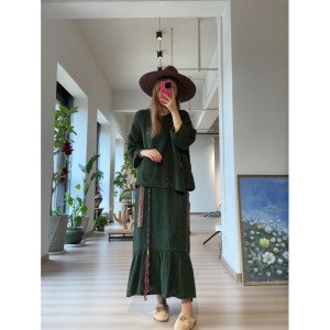 衣牧了然2510403双色亚麻编织多手工鱼尾裹裙