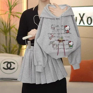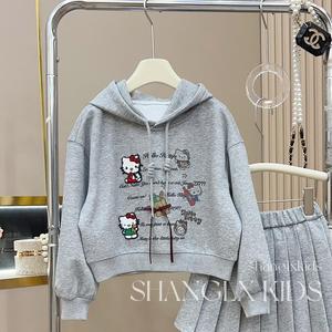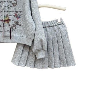 女童春季卫衣百褶短裙两件套中大童纯色卡通春秋新款连帽短裙秋装