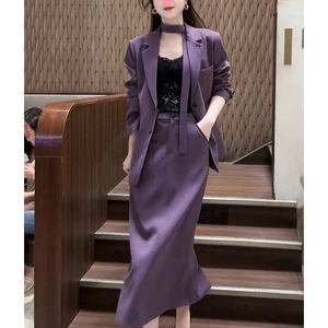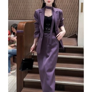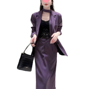 2025秋季新款高级感又又飒爆款小香风紫色西装外套半身裙套装女