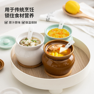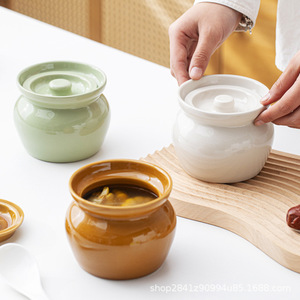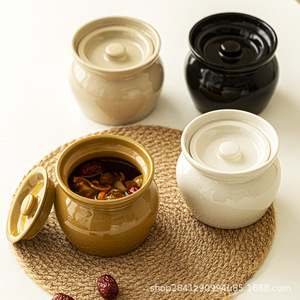 厂家批发现代陶瓷炖盅隔水炖家用带盖蒸菜汤盅炖罐蒸蛋碗土窑炖罐