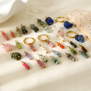 欧美波西米亚异形天然石吊坠镀金不锈钢镀金挂坠耳环DIY饰品配件
