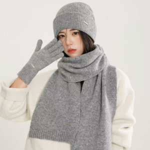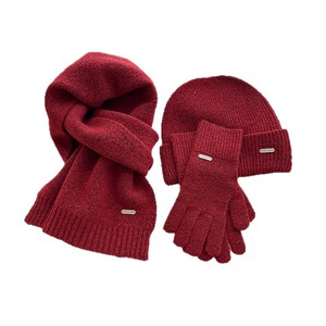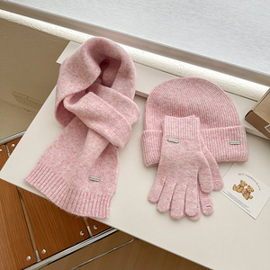 针织帽子围巾手套三件套单色羊毛秋冬保暖百搭纯色圣诞送礼套装新
