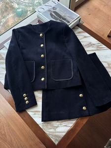 2025早秋新款时尚百搭显瘦小香风灯芯绒短外套上衣+半身裙两件套